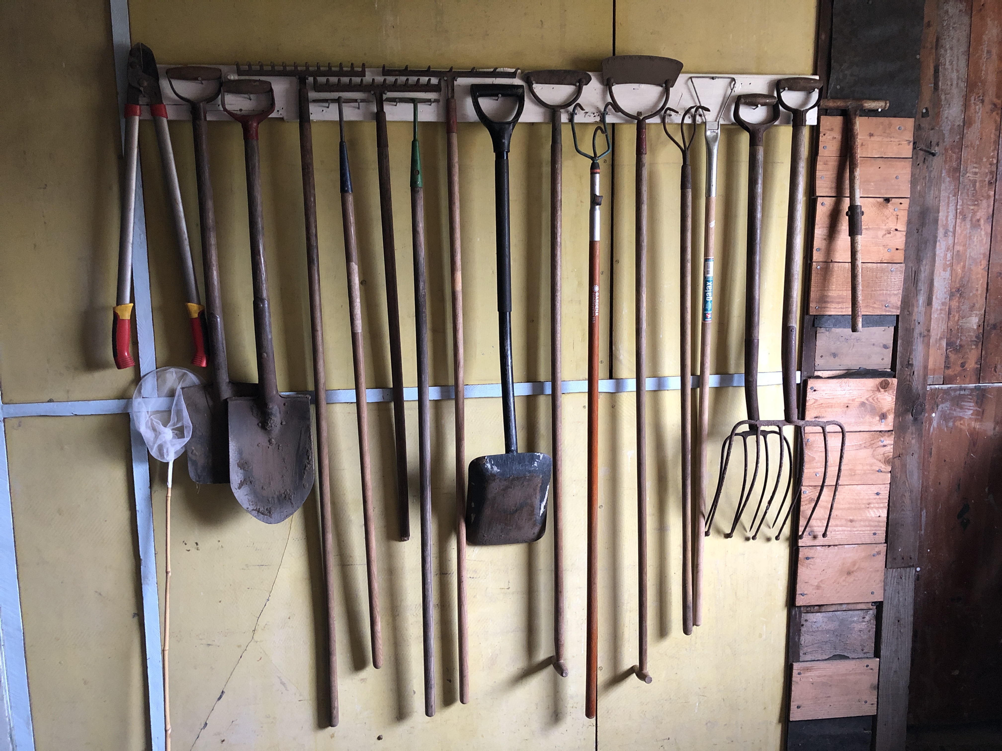 Der medfølger en del løsøre herunder div. haveredskaber, stålreoler, Stiga plæneklipper, gasovne m.fl.