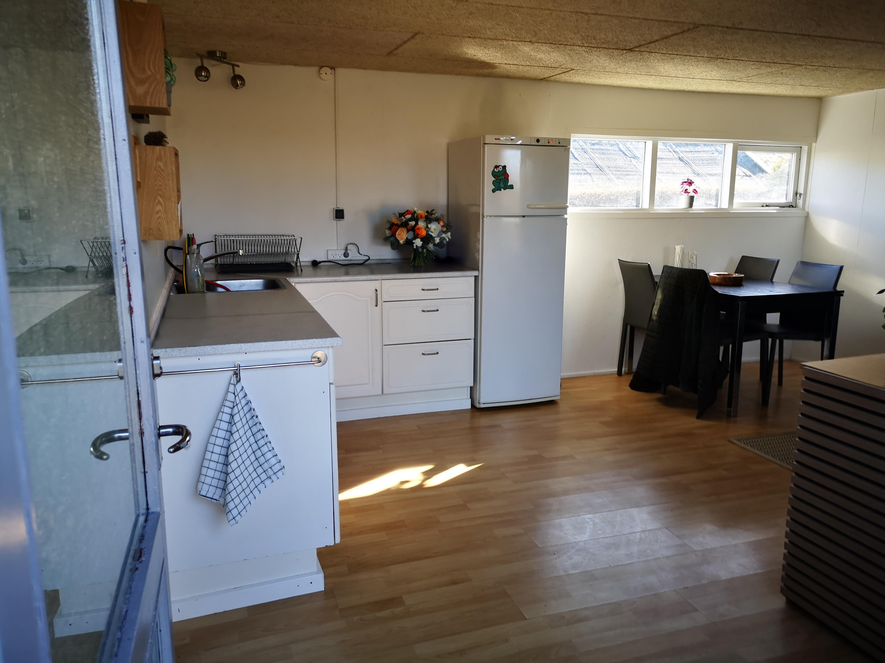 Vurderet af kolonihaveforbundet til 310.000. Huset byder på en enkel og funktionel indretning, der giver plads til både hverdag og afslapning. Det rummer 48 m² med åbent køkken/alrum, to værelser og et toilet med håndvask – perfekt til hyggelige sommerdage.