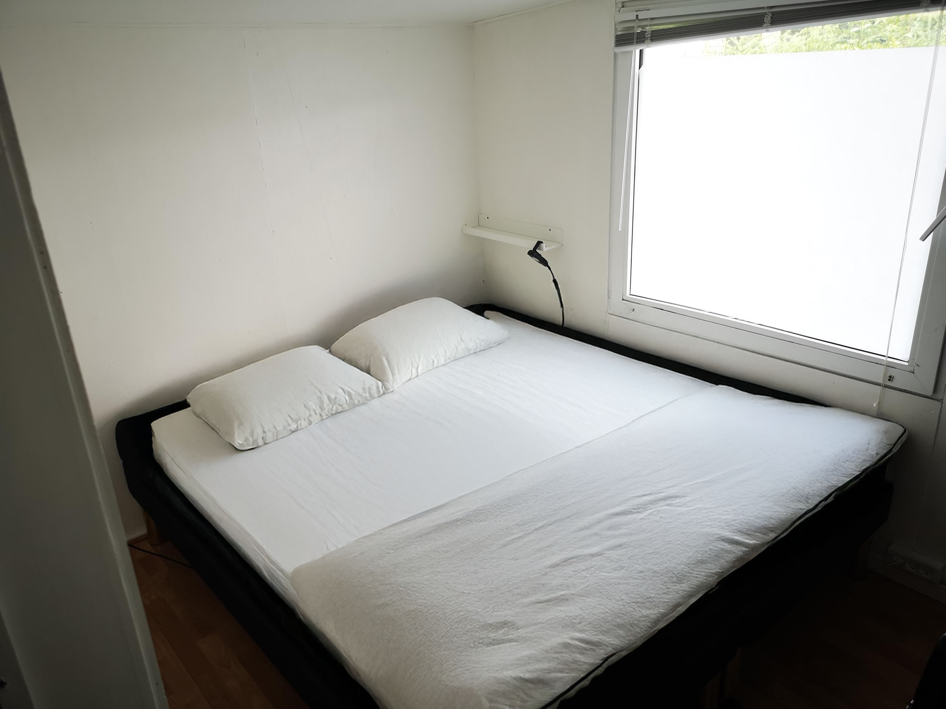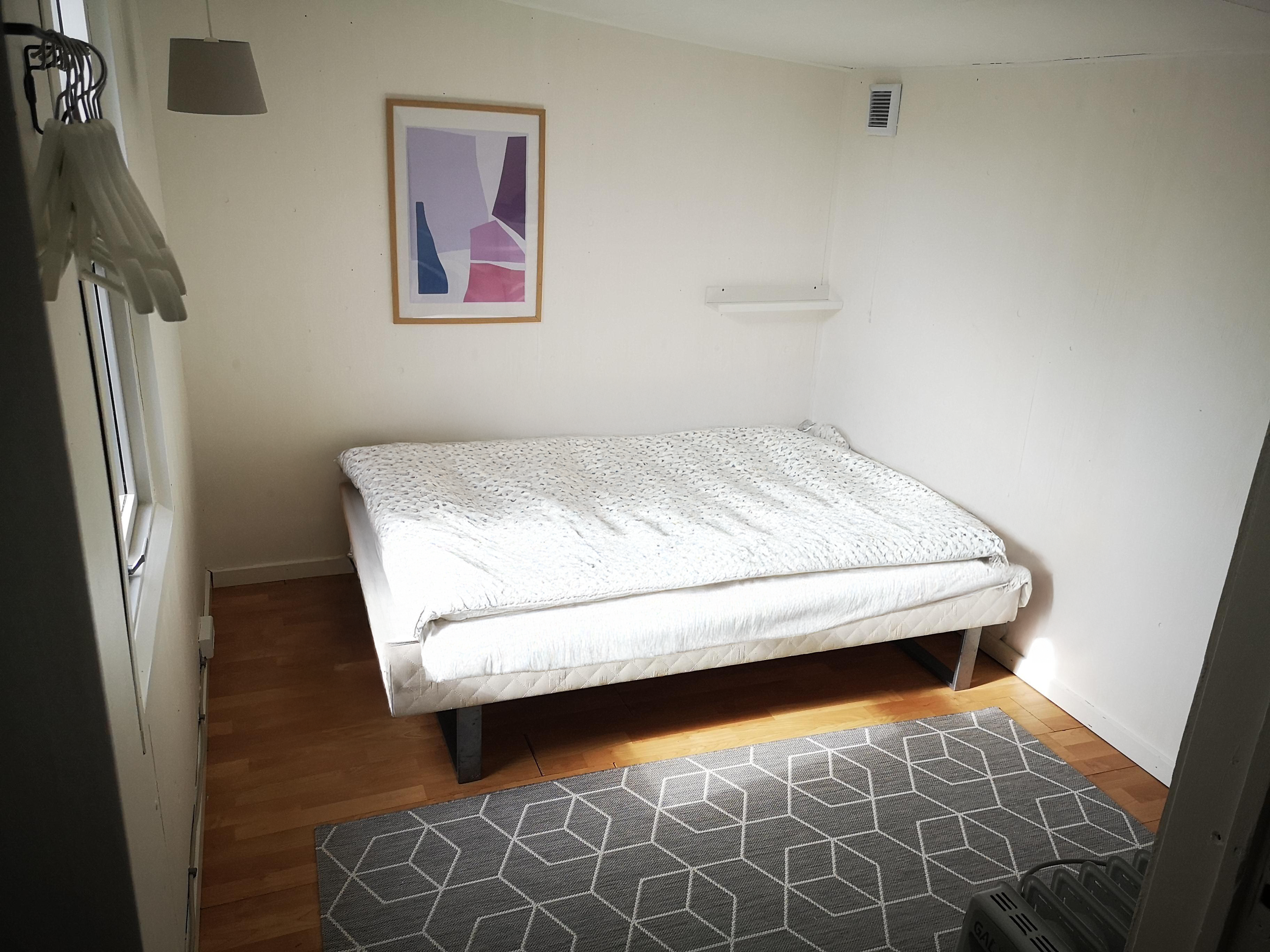 Huset er isoleret og udstyret med el, varmtvandsbeholder og samlertank.